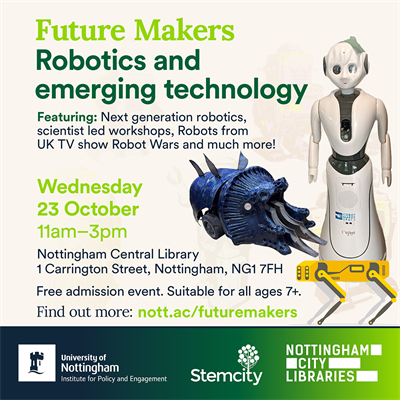 Future Makers is delivered in partnership with the Institute for Policy and Engagement at the University of Nottingham, Nottingham City Libraries and STEM City Nottingham.