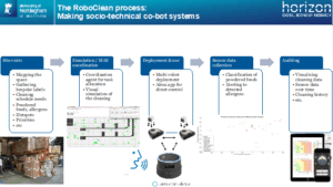 In terms of the two strands of work, the project has made significant steps to bring together the work on human-robot interaction with the work on allergen sensing, and data visualisation, in what may be called the RoboClean process to make socio-technical co-bot systems (see Fig. 1).